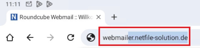 Öffnen Sie Ihrem Webbrowser auf Ihrem Smartphone und geben Sie folgende Adresse in die Adresszeile ein: „webmailer.netfile-solution.de“ ein (Ohne “ „).