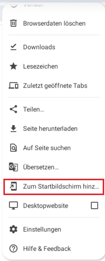 Klicken Sie nun oben rechts auf die drei Punkte oder ggf. auch Striche, die Darstellung kann je nach Browser abweichen und wählen Sie unten: