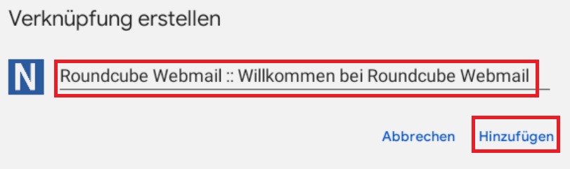 Hiernach erhalten Sie ein Fenster, wo Sie ggf. moch mal den Namen der zu erstellenden Verknüpfung anpassen können: